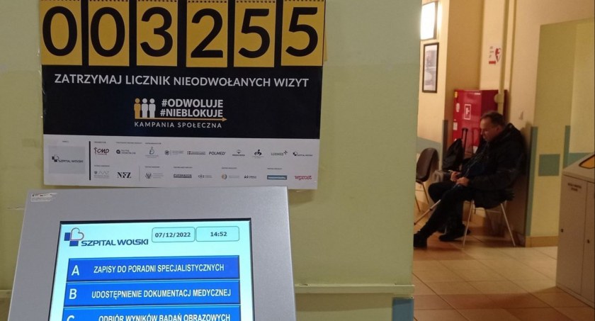 W Szpitalu Wolskim zobaczyć można licznik nieodwołanych wizyt. Aktualnie widnieje na nim liczba 3250. Wyłączono z użytku także miejsca, które zajęliby pacjenci, którzy nie przybyli na wizytę – ma to symboliczny wydźwięk i zwraca uwagę na problem.